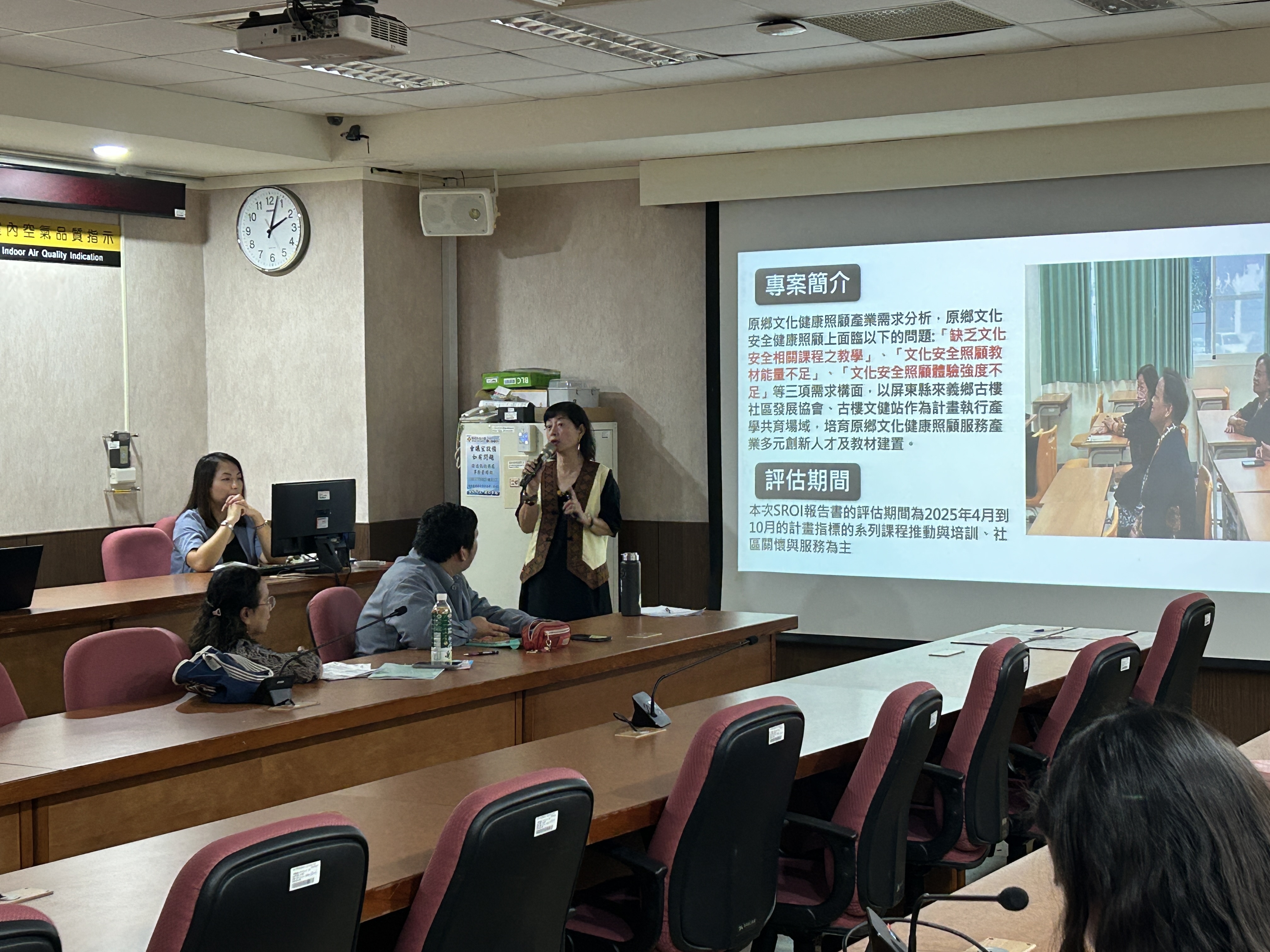 為推動影響力思維的深化與交流,本部特別舉辦 SROI 成果發表會,誠摯邀請陳明勇顧問、鄭逢緯顧問及陳冠豪執業師蒞臨指導與交流。本次發表會由三組計畫團隊共同參與,包括 USR萌芽型「智遊食肌 銀髮賦能計畫」、USR萌芽型「健康走讀,文化傳承-原鄉長者文化安全照顧培力計畫」,以及「大學社會責任納入校務發展推動計畫」,各組輪流分享執行歷程中之質性訪談成果、數據蒐集方法、模型計算過程與策略優化成果,展現教學與實務的雙向成長,同時邀請全校教職員一同參與、見證及學習,期盼透過經驗交流與觀點碰撞,激盪出更多創新思維,讓影響力理念持續擴散至更廣泛的領域。